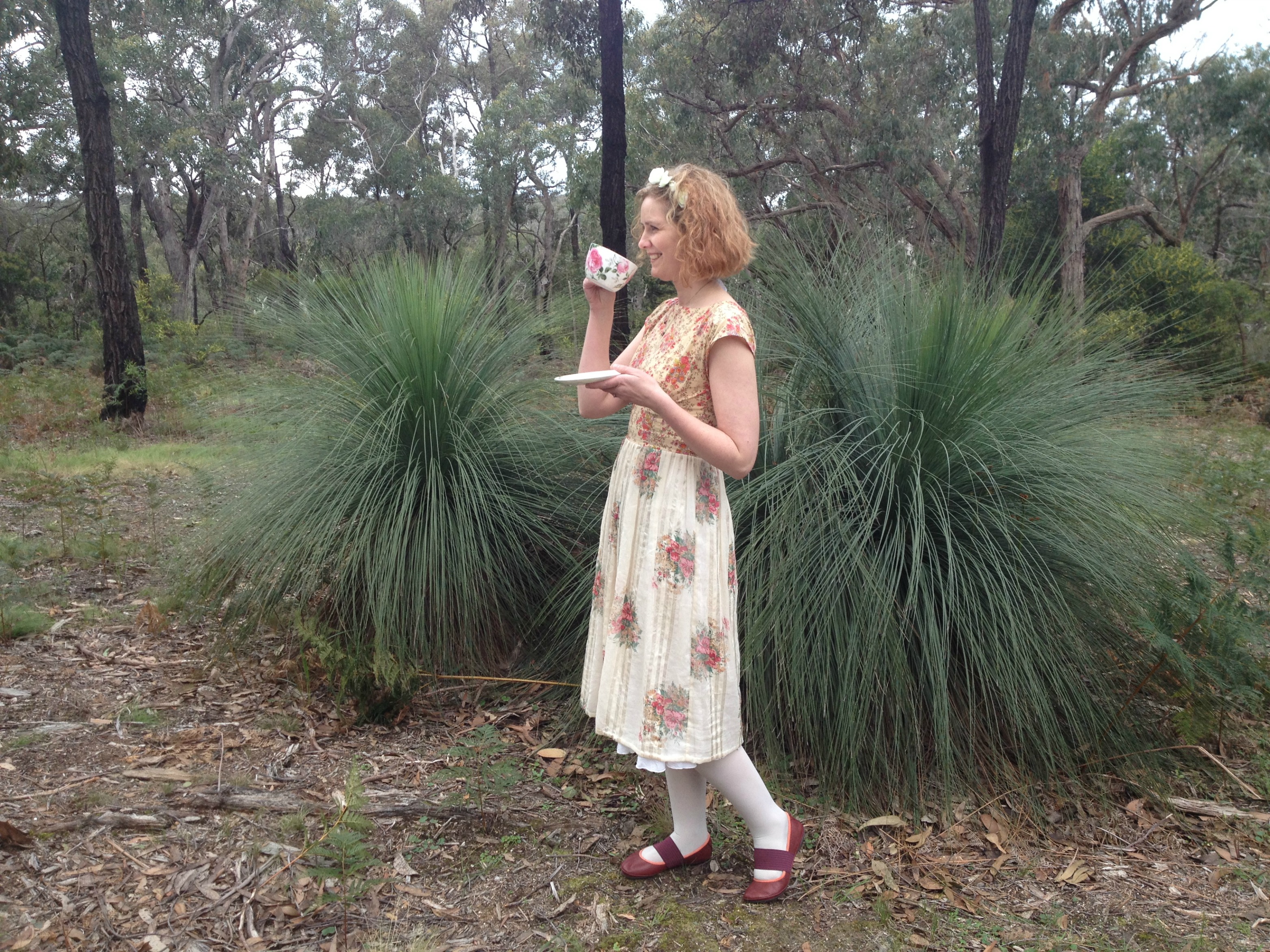 Photos by Tash and Bruce. Fabric purchased from A Piece of Cloth. Shoes from Camper. Tights from Wolford. Flower pins from Gardens of Whimsey.