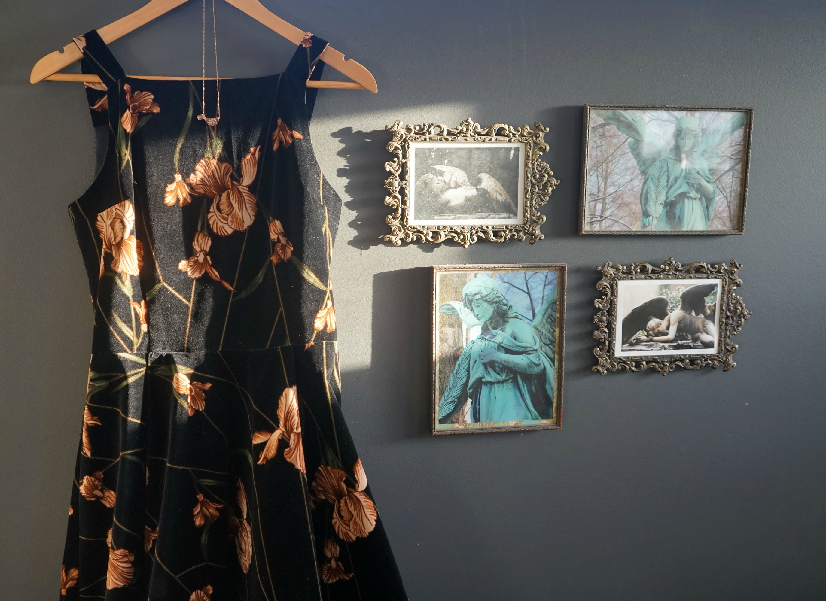 The dress I made is the Flora from By Hand London. I purchased this velvet from Jen at A Piece of Cloth a number of years ago and it’s been sitting out of the stash and wrapped in tissue with its own shelf, it was so precious.
