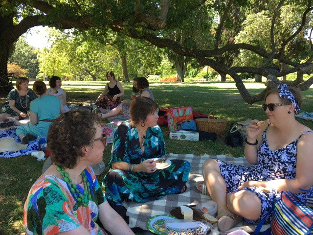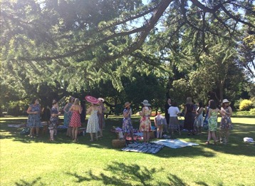 IMG_0588The second annual Sew Melbourne garden party was held recently at the Melbourne Botanical Gardens on a day that complimented the frocks and frivolities. The sun shone, the weather was quite temperate and the music most fitting.