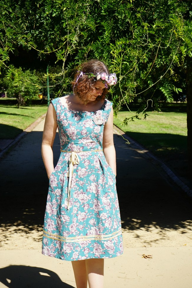 I wore the Bardot dress by Simple Sew Patterns, although I’m struggling to find where I purchased the PDF. I’d seen this pattern some time ago, and when I purchased this amazing linen from The Drapery in South Australia that I knew they were destined for one another.