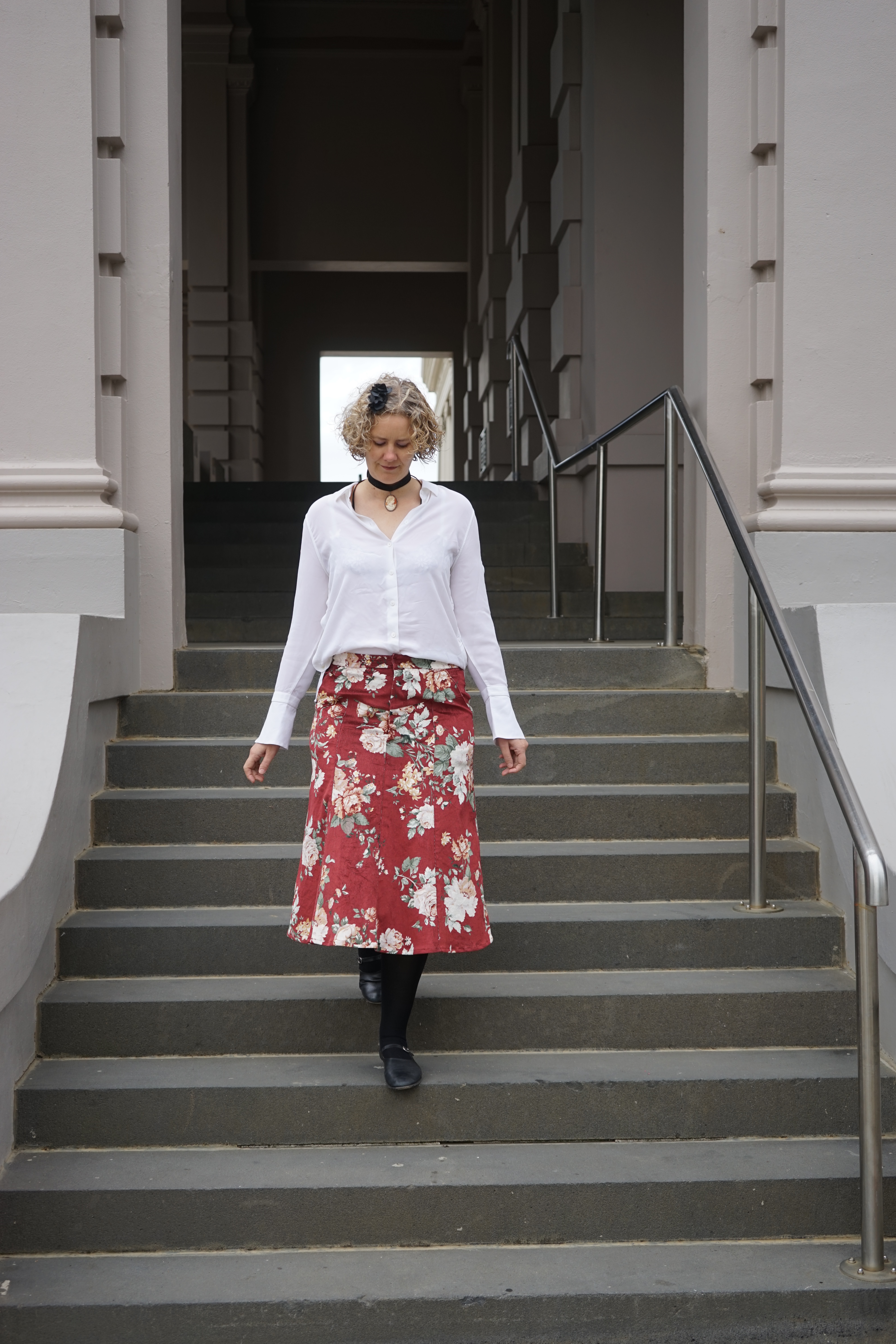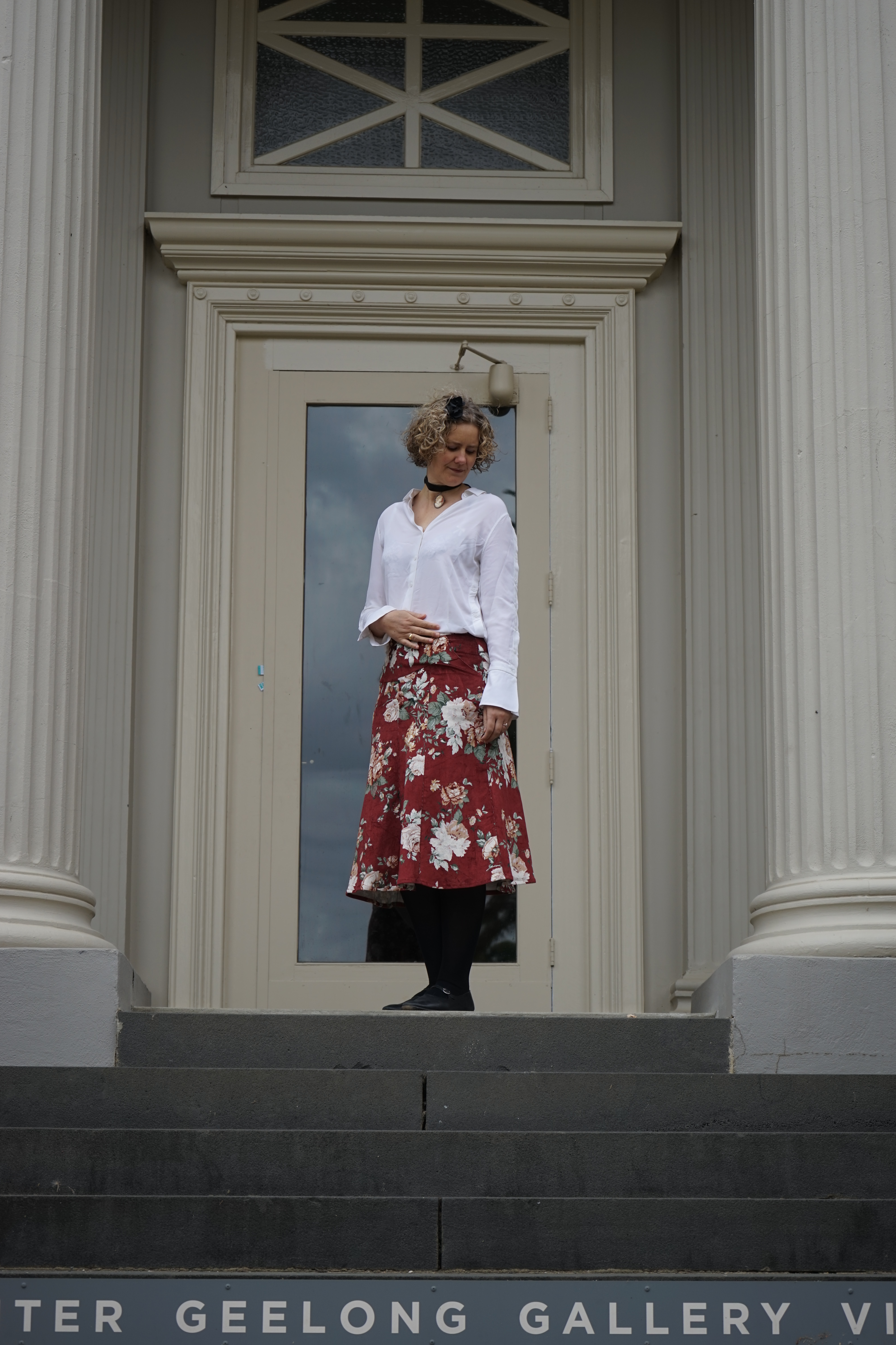I started the Salida Skirt by True Bias at least 2 months ago and only finished it last week by bribing myself with the opportunity to acquire more fabric if only I stitched on the waist band and completed the hem. I’m slowly working on a new wardrobe, sizing up as I try to settle into my post menopausal body. I haven’t found the freedom or delight that some women find with this change, just frustration and disappointment. At the moment I’ve stopped actively fighting it, and am just sitting with it. I feel there is still a lack of acceptance around it for myself and I’m struggling with finding a new wardrobe that flatters and is comfortable. My old style no longer seems to work and I’m searching for new patterns that fit and look good. I’ve even resorted to buying some RTW of late as a gap stop. But there’s my white female privilege poking her little head out.